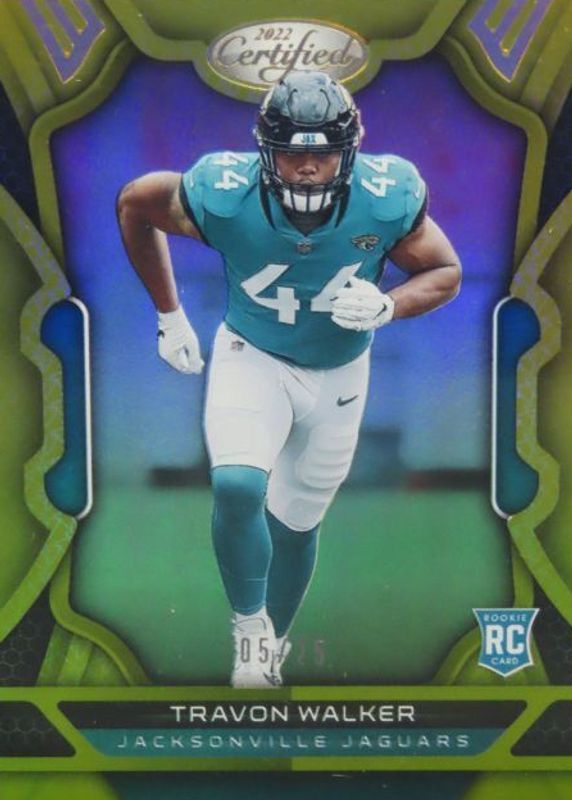 The Travon Walker 2022 Certified #126 Mirror Gold /25 Rookie card in Raw condition has not changed in price in the last 30 days and was last sold for $2.25 .
