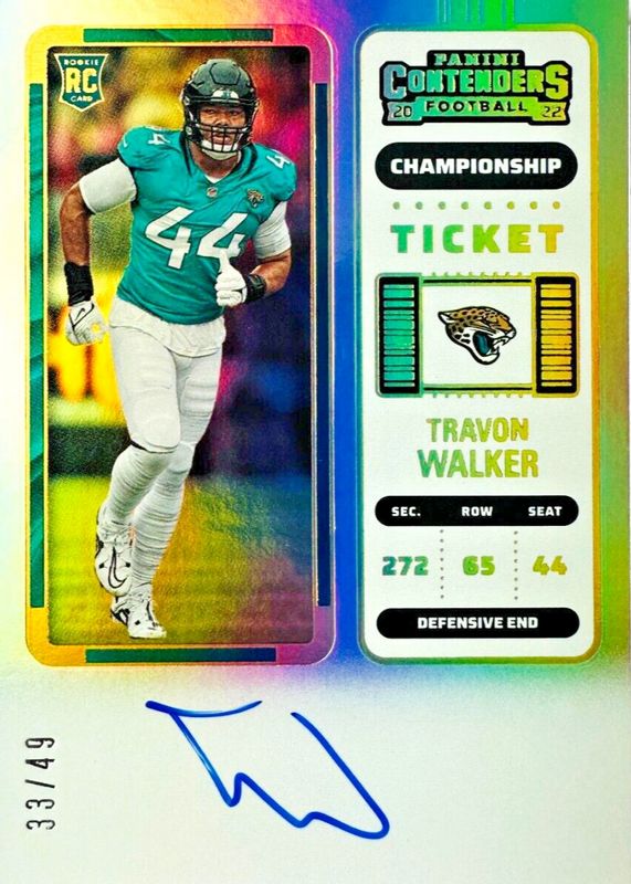 2022 Contenders Travon Walker Rookie Auto Championship Ticket 42/49 Jaguars