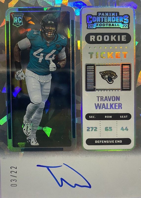 2022 Contenders Travon Walker CRACKED ICE RC TICKET On Card AUTO #'D /22 JAGUARS