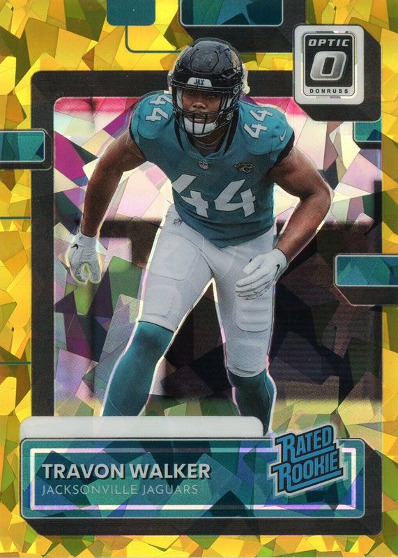 The Travon Walker 2022 Donruss #P-325 Optic Preview - Gold Ice /10 Rookie card in Raw condition has not changed in price in the last 30 days and was last sold for $45.00 .