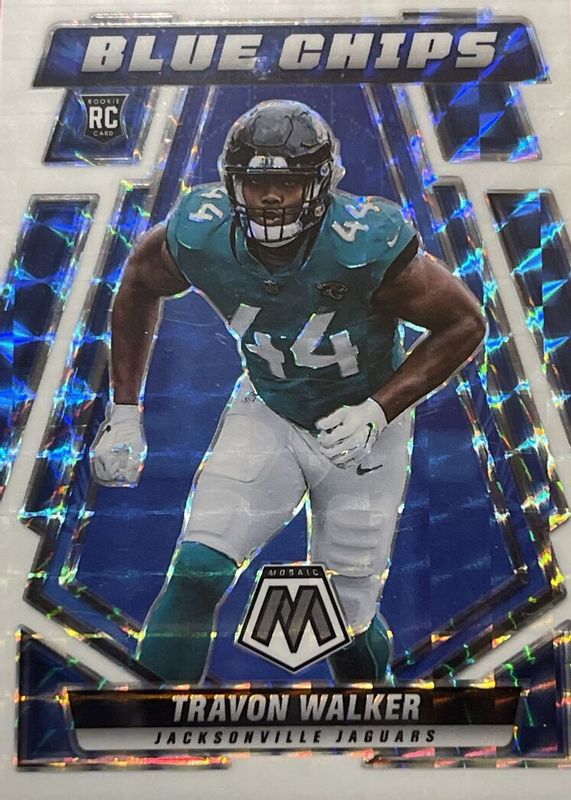 The Travon Walker 2022 Mosaic #BC-15 Blue Chips - White /25 Rookie card in Raw condition has not changed in price in the last 30 days and was last sold for $29.99 .