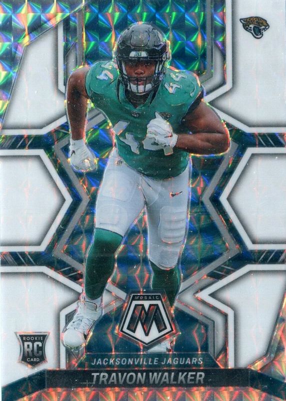 This card is 1 of 70 Travon Walker's card variations in the 2022 Mosaic set being tracked by Sports Card Investor, including Base, Green, No Huddle, Pink Camo, and Reactive Orange.