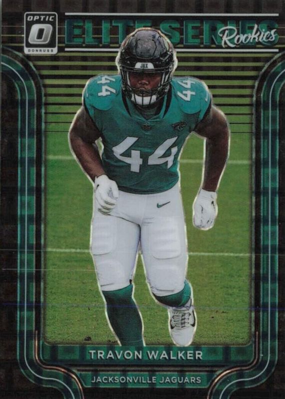 The Travon Walker 2022 Optic #ESR-19 The Elite Series Rookies - Black Pandora /25 card in Raw condition has not changed in price in the last 30 days and was last sold for $11.06 .