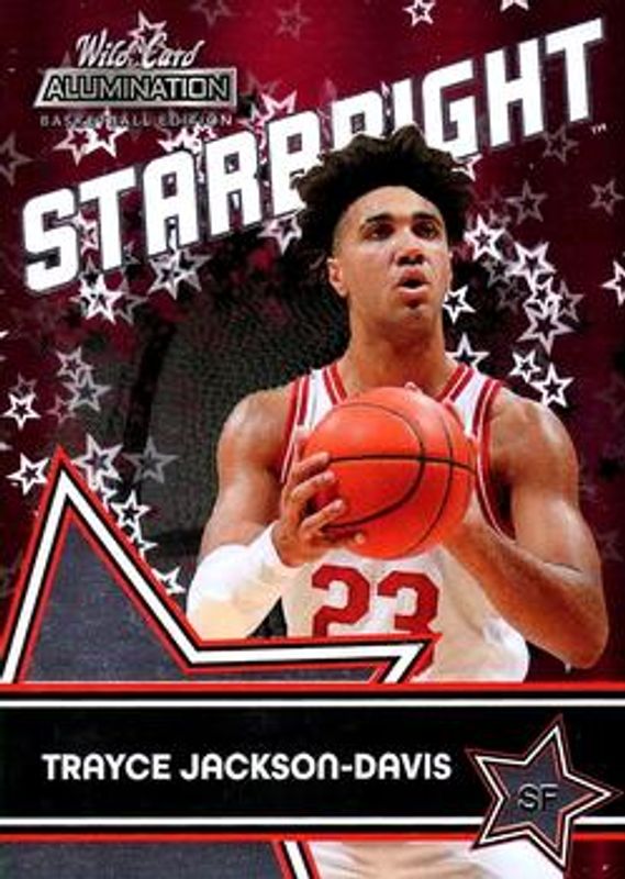 The Trayce Jackson-Davis 2021 Wild Card Alumination #SB-21 Starbright Fuchsia card is 1 of 525 Trayce Jackson-Davis' card variations in the 2021 Wild Card Alumination set being tracked by Sports Card Investor, including Base, 100 Stripe, 10 Stripe, 20 Stripe, and 50 Stripe.