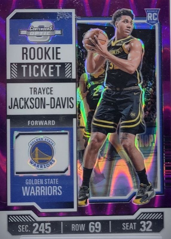The Trayce Jackson-Davis 2023 Contenders Optic #14 Rookie Ticket - Purple FOTL /18 card in Raw condition has not changed in price in the last 30 days and was last sold for $24.50 .