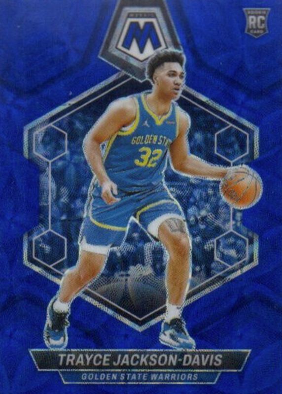 The Trayce Jackson-Davis 2023 Mosaic #205 International Blue /25 Rookie card in Raw condition has not changed in price in the last 30 days and was last sold for $4.25 .
