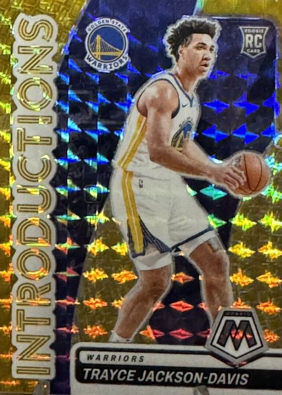 The Trayce Jackson-Davis 2023 Mosaic #5 Introductions - Gold /10 Rookie card in Raw condition has not changed in price in the last 30 days and was last sold for $35.00 .
