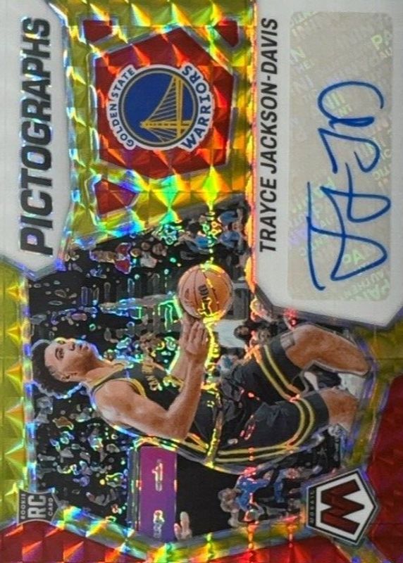 The Trayce Jackson-Davis 2023 Mosaic #PM-TJD Pictographs Autographs - Choice Rookie card in Raw condition has not changed in price in the last 30 days and was last sold for $6.60 .