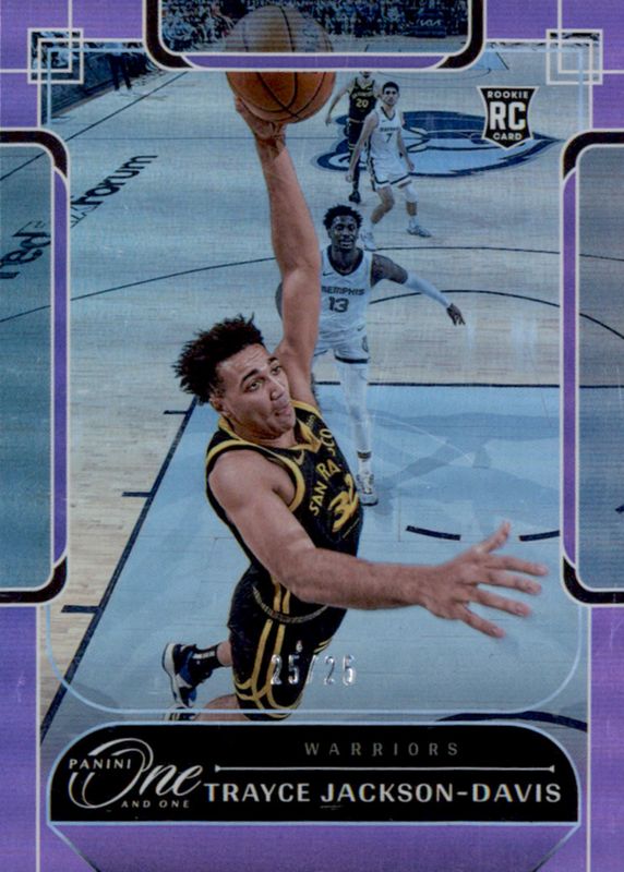 The Trayce Jackson-Davis 2023 One and One #144 Purple /25 Rookie card in Raw condition has not changed in price in the last 30 days and was last sold for $8.50 .