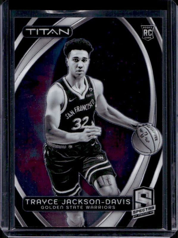 The Trayce Jackson-Davis 2023 Spectra #18 Titan Rookie card is 1 of 71 Trayce Jackson-Davis' card variations in the 2023 Spectra set being tracked by Sports Card Investor, including #175 Base, #233 Base, #175 International, #233 International, and #175 International Black & White.