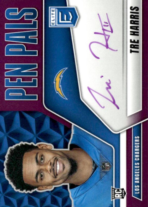 2025 Tre Harris Panini Elite Rookie Purple On Card Pen Pals Auto SSP Chargers RC