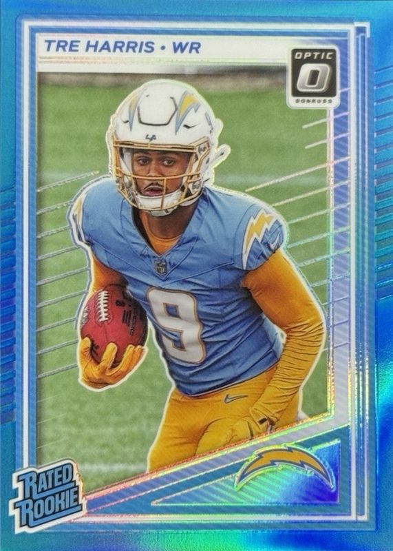 2025 Panini Donruss Optic Rated Rookie Aqua Prizm Tre Harris #229 Chargers /349