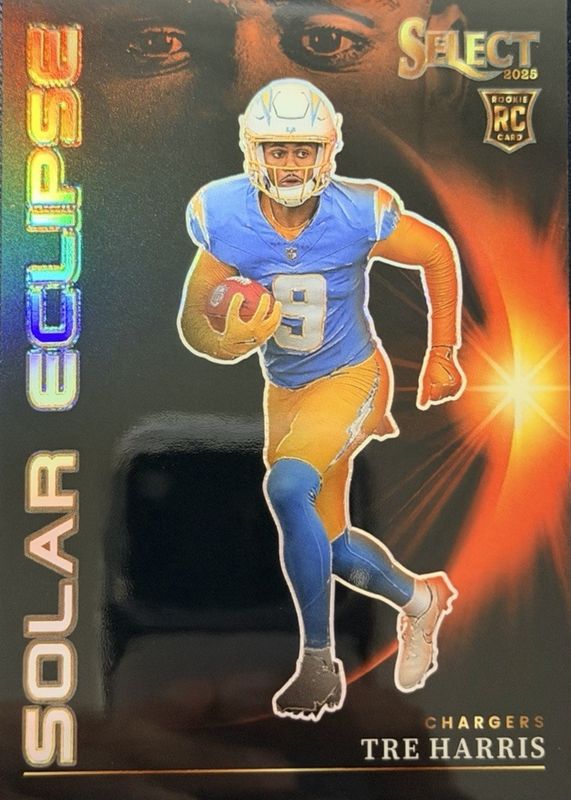 The Tre Harris 2025 Select #15 Solar Eclipse /(SSP) Rookie card in Raw condition has not changed in price in the last 30 days and was last sold for $29.55 .