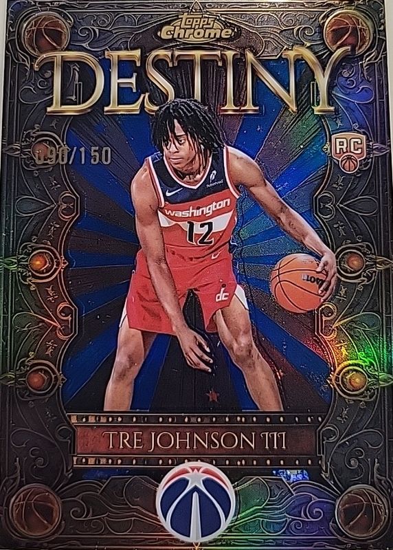 The Tre Johnson III 2025 Topps Chrome #D-6 Destiny - Blue Refractor /150 Rookie card in Raw condition has moved up $0.40 (+4.0%) in the last 30 days and was last sold for $10.40 .