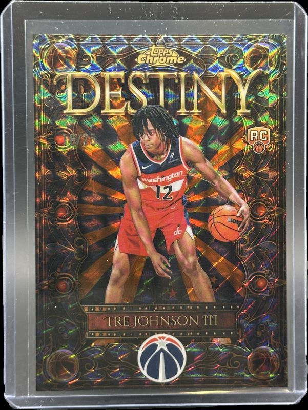 The Tre Johnson III 2025 Topps Chrome #D-6 Destiny - Orange Refractor /25 Rookie card in Raw condition has not changed in price in the last 30 days and was last sold for $42.00 .