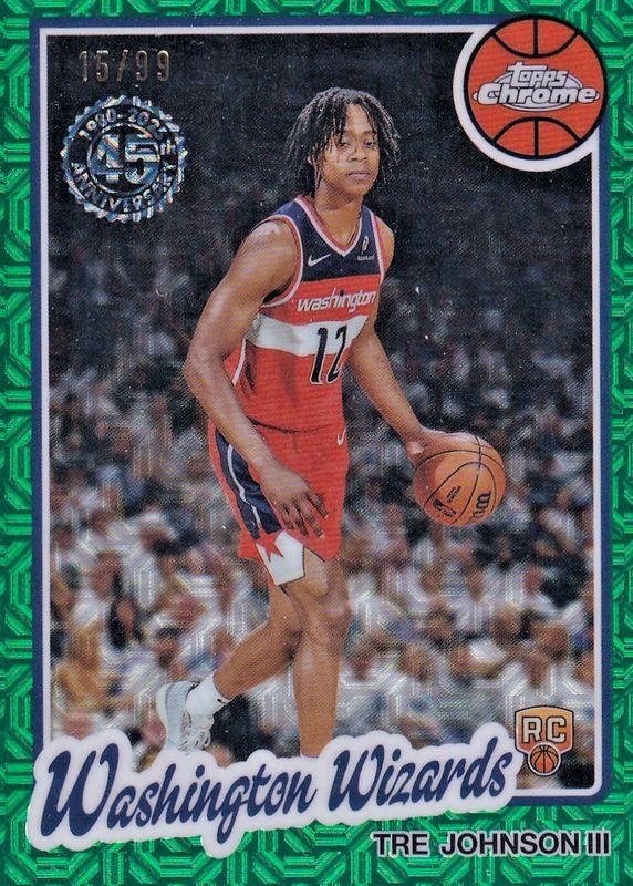 The Tre Johnson III 2025 Topps Silver Pack #TC-TJ 1980-81 Topps Chrome - Green Refractor /99 Rookie card in Raw condition has moved up $20.75 (+128%) in the last 30 days and was last sold for $37.00 .