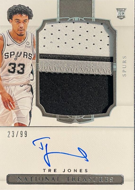2020-21 NATIONAL TREASURES TRE JONES rookie patch auto rpa 23/99 #150 spurs rc