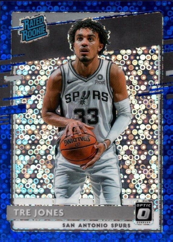 TRE JONES /50 RATED ROOKIE BLUE DISCO PRIZMS RC 2020-21 DONRUSS OPTIC FAST BREAK
