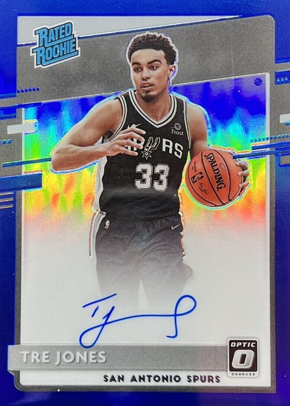 2020-21 Donruss Optic Rated Rookie Blue Prizm Autograph Auto Tre Jones 44/49 RC