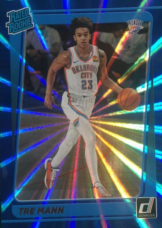 2021-22 Panini Donruss Tre Mann Rated Rookie Blue Laser 8/49 #218 Rc