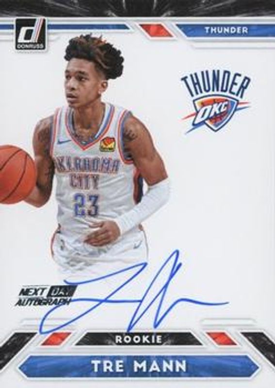 The Tre Mann 2021 Donruss #ND-TMN Next Day Autographs Rookie card is 1 of 61 Tre Mann's card variations in the 2021 Donruss set being tracked by Sports Card Investor, including Base, Choice, Green Ice, Green Laser, and Green & Yellow Laser.