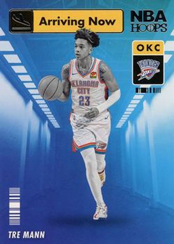 The Tre Mann 2021 Hoops #22 Arriving Now Rookie card is 1 of 44 Tre Mann's card variations in the 2021 Hoops set being tracked by Sports Card Investor, including Base, Anniversary Edition, Blue, Green Ice, and Hyper Blue.