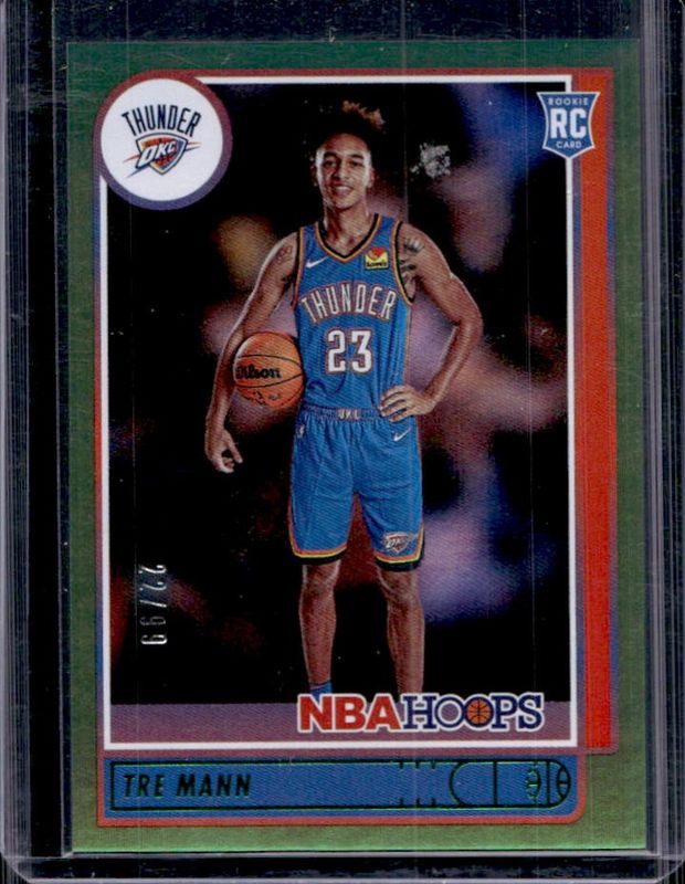 The Tre Mann 2021 Hoops #237 Green /99 Rookie card is 1 of 44 Tre Mann's card variations in the 2021 Hoops set being tracked by Sports Card Investor, including Base, Anniversary Edition, Blue, Green Ice, and Hyper Blue.