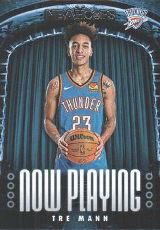 The Tre Mann 2021 Hoops #18 Now Playing Rookie card is 1 of 44 Tre Mann's card variations in the 2021 Hoops set being tracked by Sports Card Investor, including Base, Anniversary Edition, Blue, Green Ice, and Hyper Blue.