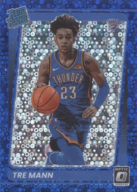 The Tre Mann 2021 Optic #168 Fast Break Blue /50 Rookie card in Raw condition has not changed in price in the last 30 days and was last sold for $3.25 .