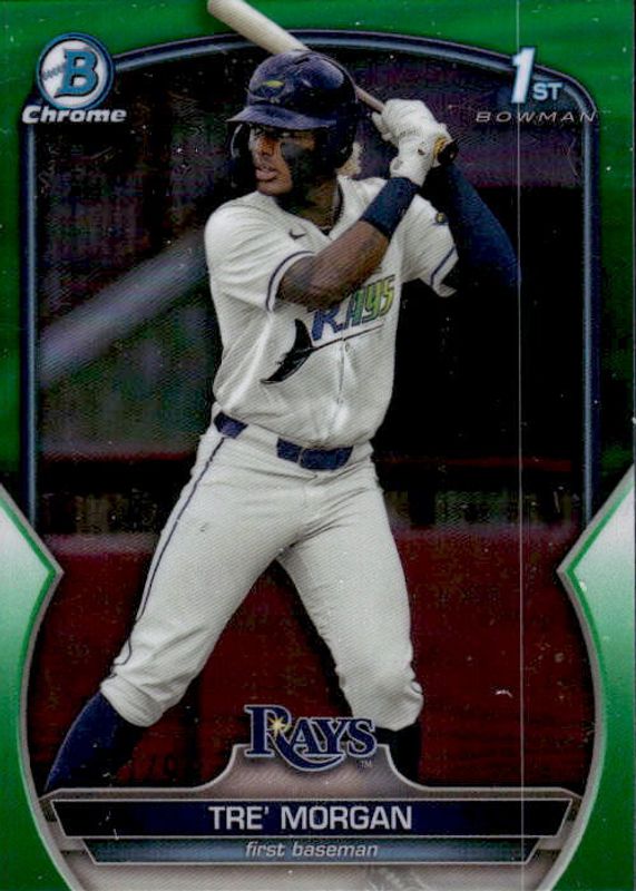 Best Prices Available For Sale of Tre' Morgan 2023 Bowman Draft #BDC-199 Chrome - Green Refractor /99 (1st)