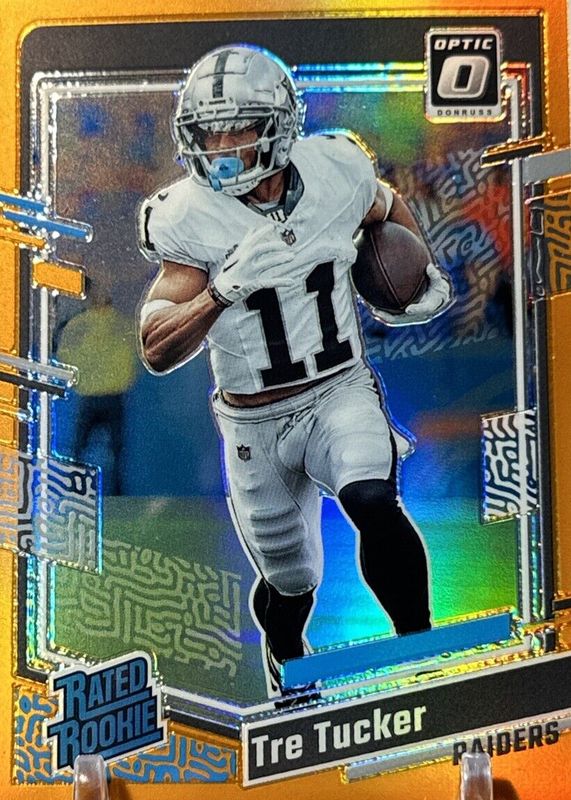 The Tre Tucker 2023 Optic #261 Orange /249 Rookie card in Raw condition has moved up $1.00 (+25.0%) in the last 30 days and was last sold for $5.00 .