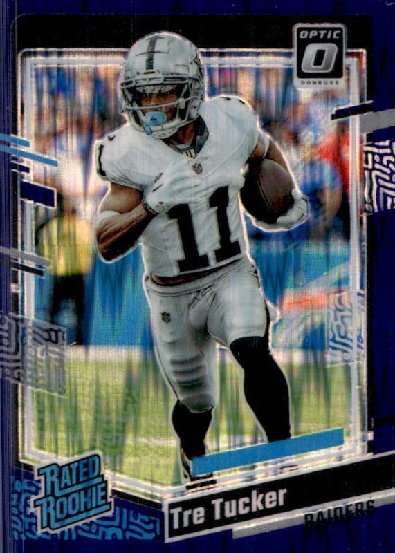 This card is 1 of 54 Tre Tucker's card variations in the 2023 Optic set being tracked by Sports Card Investor, including Base, Blue Hyper, Blue Scope, Green Hyper, and Green Velocity.