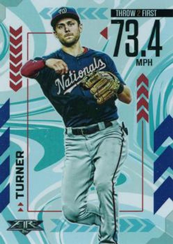 The Trea Turner 2020 Topps Fire #AA-15 Arms Ablaze card is 1 of 15 Trea Turner's card variations in the 2020 Topps Fire set being tracked by Sports Card Investor, including Base, Blue Chip, Flame, Gold Minted, and Onyx.