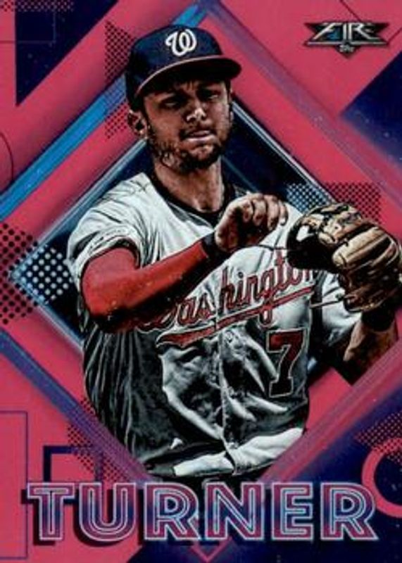 The Trea Turner 2020 Topps Fire #86 Magenta /25 card is 1 of 15 Trea Turner's card variations in the 2020 Topps Fire set being tracked by Sports Card Investor, including Base, Blue Chip, Flame, Gold Minted, and Onyx.