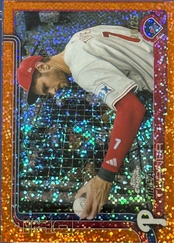 Auctions Ending Soon for Trea Turner 2025 Topps Chrome #208 Image Variation - Orange Speckle Refractor /25 RAW
