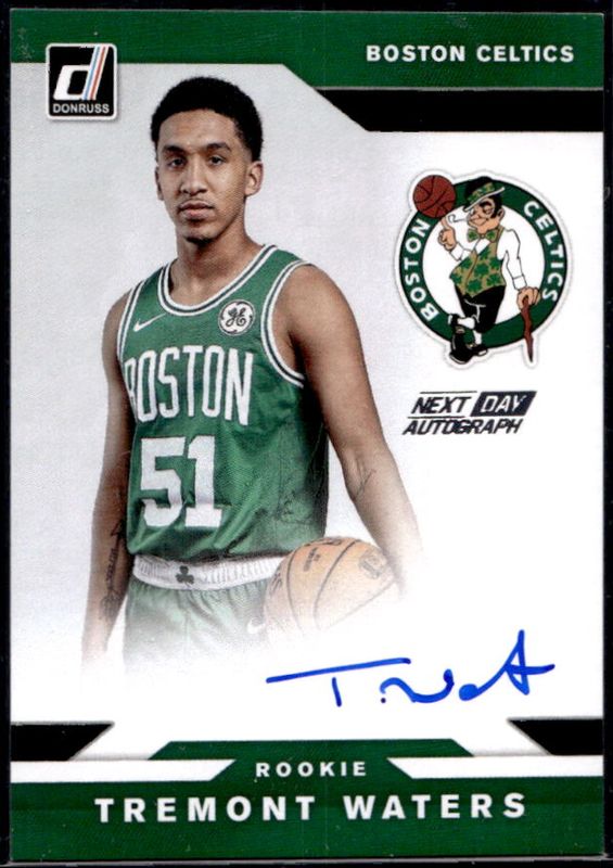 The Tremont Waters 2019 Donruss #ND-TWT Next Day Autographs Rookie card is 1 of 42 Tremont Waters' card variations in the 2019 Donruss set being tracked by Sports Card Investor, including Base, Green Flood, Green & Yellow Laser, Infinite, and Orange Laser.