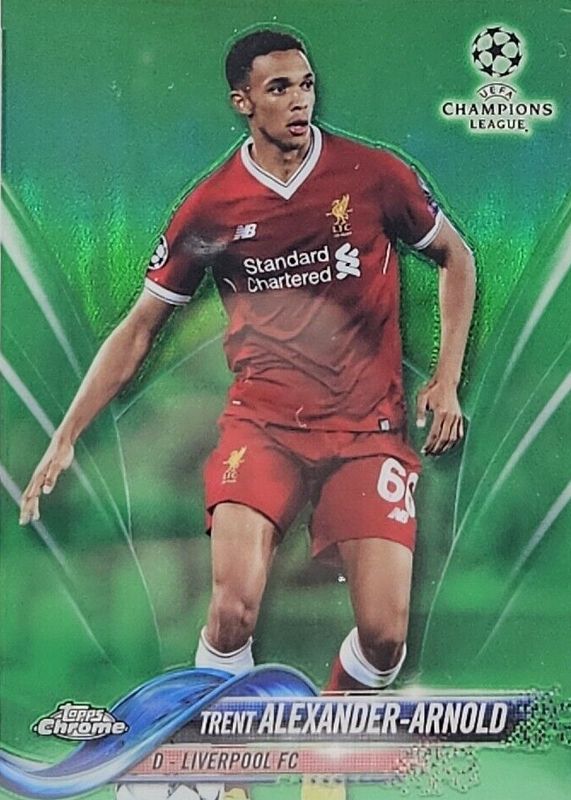 The Trent Alexander-Arnold 2017 Topps Chrome UEFA Champions League #29 Green Refractor /99 Rookie card in Raw condition has not changed in price in the last 30 days and was last sold for $116.50 .