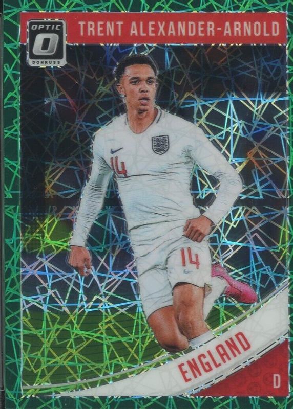 The Trent Alexander-Arnold 2018 Donruss #127 Optic - Green Velocity /200 card in Raw condition has not changed in price in the last 30 days and was last sold for $5.02 .
