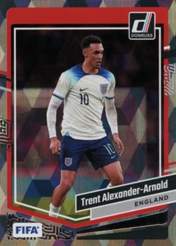 The Trent Alexander-Arnold 2023 Donruss #10 Cubic card is 1 of 63 Trent Alexander-Arnold's card variations in the 2023 Donruss set being tracked by Sports Card Investor, including #10 Base, #102 Base, #10 Optic, #102 Optic, and #102 Cubic.