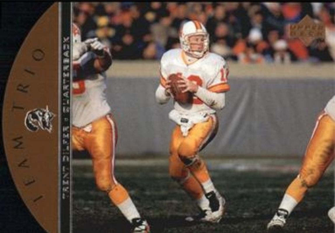 The Trent Dilfer 1996 Upper Deck #TT65 Team Trio card is 1 of 2 Trent Dilfer's card variations in the 1996 Upper Deck set being tracked by Sports Card Investor, including Base.