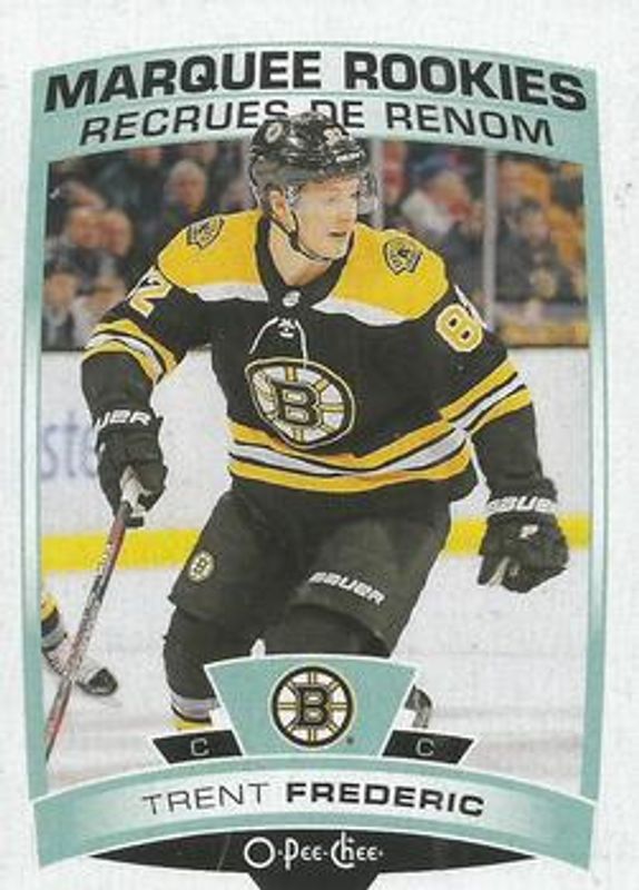 The Trent Frederic 2019 O-Pee-Chee #512 Base Rookie card is 1 of 8 Trent Frederic's card variations in the 2019 O-Pee-Chee set being tracked by Sports Card Investor, including Blue Border, Gold Border, Red Border, Red Border Blank Back, and Retro.