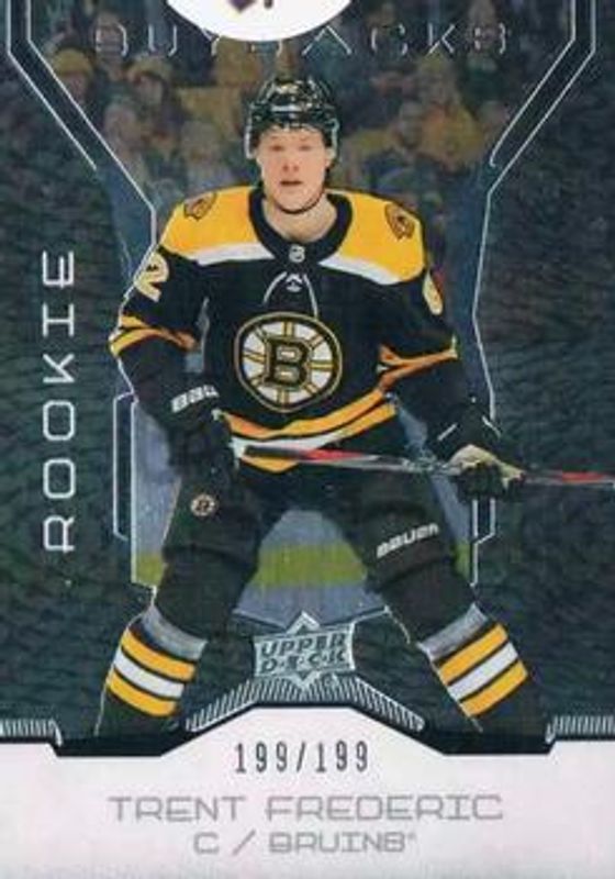 The Trent Frederic 2019 Upper Deck Buybacks #48 Base /199 Rookie card is 1 of 4 Trent Frederic's card variations in the 2019 Upper Deck Buybacks set being tracked by Sports Card Investor, including Gold /50, Emerald /25, and Purple /1.