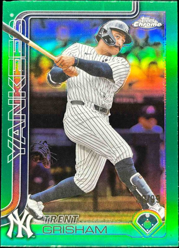 The Trent Grisham 2025 Topps Chrome Update #USC54 Green Refractor /99 card is 1 of 52 Trent Grisham's card variations in the 2025 Topps Chrome Update set being tracked by Sports Card Investor, including Base, Geometric Refractor, Negative Refractor, Prism Refractor, and RayWave Refractor.