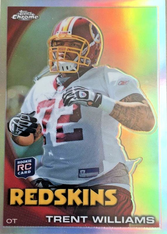 The Trent Williams 2010 Topps Chrome #C102 Refractor Rookie card in Raw condition has moved down -$19.50 (-78.0%) in the last 30 days and was last sold for $5.50 .