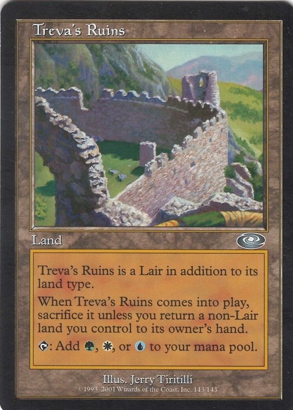 The Treva's Ruins 2001 Planeshift #143 Base card in Raw TCG (Lightly Played) condition has not changed in price in the last 30 days and was last sold for $1.00 .