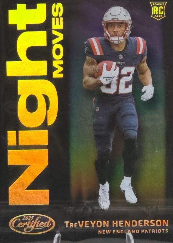 The TreVeyon Henderson 2025 Certified #NMS-THN Night Moves /(SSP) Rookie card in Raw condition has moved up $11.00 (+22.0%) in the last 30 days and was last sold for $61.00 .
