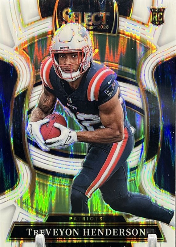 This card is 1 of 221 TreVeyon Henderson's card variations in the 2025 Select set being tracked by Sports Card Investor, including Club Level, Concourse, Field Level, Club Level Black & Blue Shock, and Club Level Black & Gold Shock.