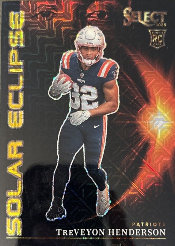 The TreVeyon Henderson 2025 Select #12 Solar Eclipse - Gold /10 Rookie card in Raw condition has not changed in price in the last 30 days and was last sold for $399.99 .