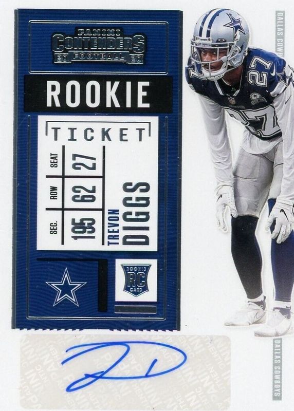 The Trevon Diggs 2020 Contenders #162 Rookie Ticket Auto card in Raw condition has moved up $13.99 (+175%) in the last 30 days and was last sold for $21.99 .
