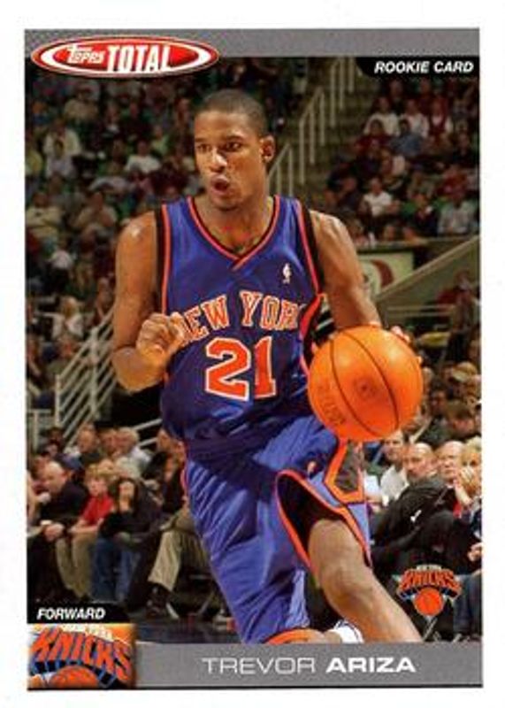 The Trevor Ariza 2004 Topps Total #314 Base Rookie card is 1 of 10 Trevor Ariza's card variations in the 2004 Topps Total set being tracked by Sports Card Investor, including Silver, Press Plates Black Front /1, Press Plates Black Reverse /1, Press Plates Cyan Front /1, and Press Plates Cyan Reverse /1.